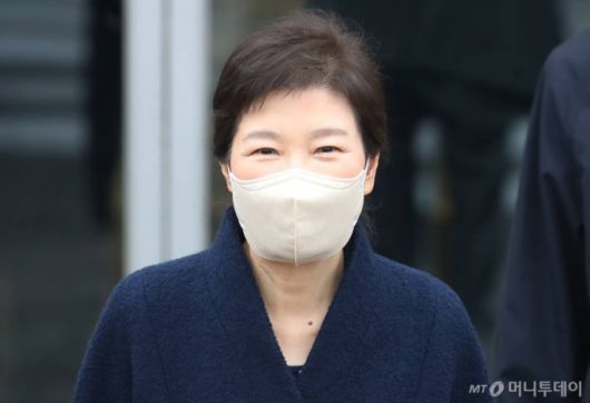 박 전 대통령은 흰머리가 보이던 구치소 때와 달리 검게 염색한 올림머리를 한 모습이었다. 지지자들의 응원에 마스크를 쓴 채로 눈웃음을 지어 보였다.