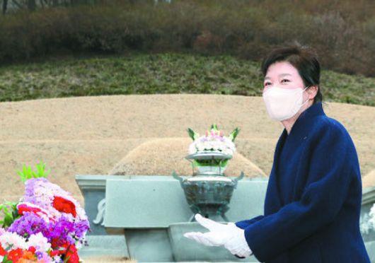 박근혜 전 대통령이 24일 국립서울현충원에서 박정희 전 대통령 묘역에 참배하고 있다. [사진공동취재단] |