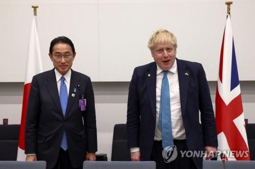 (런던=연합뉴스) 최윤정 특파원 = 보리스 존슨 영국 총리가 24일(현지시간) 주요 7개국(G7) 정상회의 전 기시다 후미오(岸田文雄) 일본 총리를 만나 "최근 북한 미사일 발사를 규탄했다"고 영국 총리실이 밝혔다.