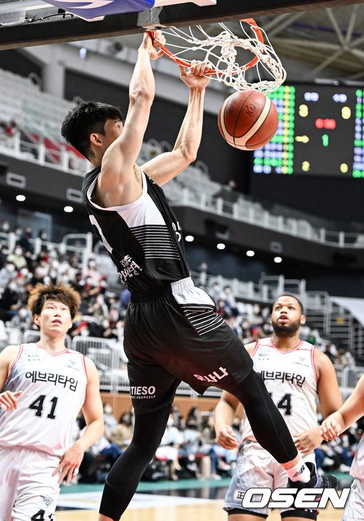 [OSEN=수원,박준형 기자] 25일 오후 수원 KT소닉붐 아레나에서 ’2021-2022 KGC 인삼공사 정관장 프로농구’ 수원 KT와 안양 KGC의 경기가 진행됐다. 1쿼터 KT 하윤기가 엘리웁덩크슛을 성공 시키고 있다. 2022.03.24 / soul1014@osen.co.kr