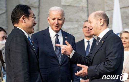 기시다 후미오 일본 총리와 조 바이든 미국 대통령 등이 브뤼셀에서 만났다. © 로이터=뉴스1 © News1 이서영 기자 |