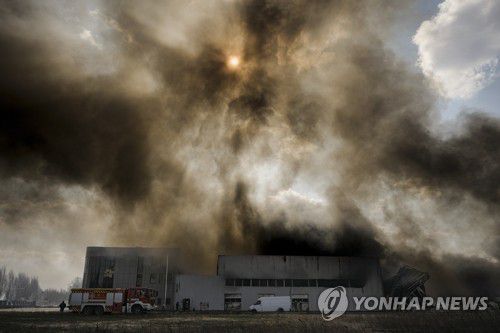 '러군 포격' 건물 주변 하늘 뒤덮은 검은 연기 |
