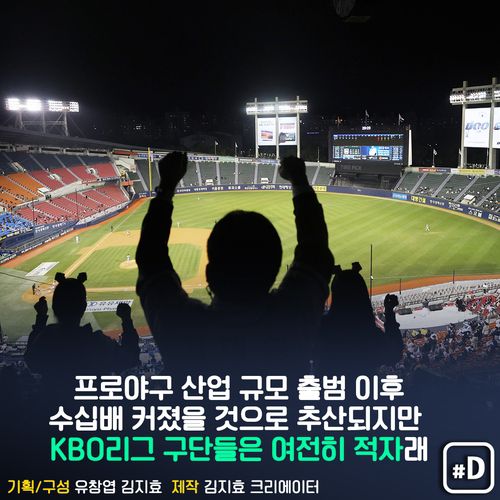 프로야구 산업 규모가 얼마나 큰지는 정확한 집계가 없지만 수십 배는 커졌을 것이라는 게 KBO 관계자들의 판단입니다. 하지만 KBO리그 구단들은 여전히 적자라고 합니다.