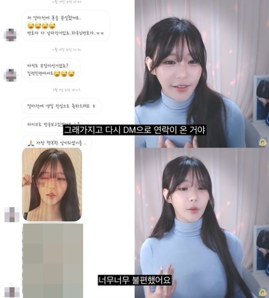 BJ 하루는 "(A씨가) 처음에는 사업 이야기를 하더라. 엔터 제의에 관심이 없어서 답장을 안 했는데 다른 BJ를 통해서 또 연락이 왔다. 그러더니 나한테 팬심이 있다고 만나자고 하는 거다. 부담이 돼서 거절했는데 누가 봐도 고백이라고 할 수밖에 없는 확실한 고백이었다. 좋게 끝냈다고 생각했는데 휴대전화를 잃어버렸다면서 다시 DM이 오기 시작했고 저는 답장을 하지 않았다"고 주장했다.