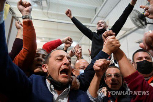 승리 확신에 환호하는 몰타 노동당 후보 |