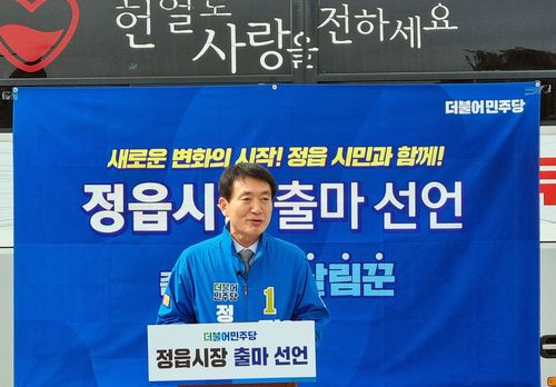 김 전 조합장은 이날 정읍역 광장에서 가족과 지지자 등 100여 명과 함께 헌혈 봉사를 한 뒤 "정읍을 전북 서남권 중심도시로 다시 세우겠다"고 출마의 변을 밝혔다.