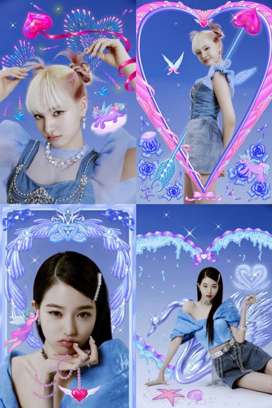 먼저 원영은 긴 생머리에 핀으로 포인트를 주며 청순하면서도 발랄한 비주얼을 선보였다. 또한 키치한 무드의 배경 속에서 애교 가득한 표정을 지으며 사랑스러운 분위기를 자아냈다. 이어 리즈는 화려한 투톤 머리를 양쪽으로 올려 묶은 일명 '뿌까 머리'로 인형 같은 모습을 드러냈다.