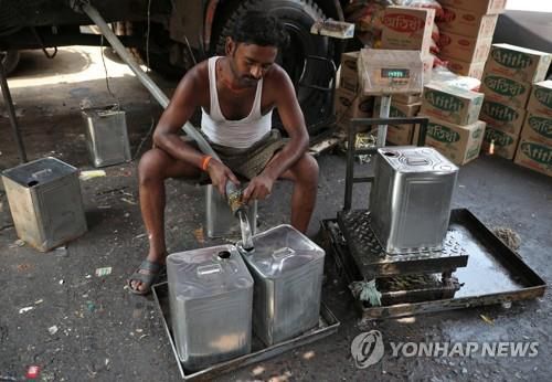 인도에서 카놀라유를 통에 담고 있는 모습 |