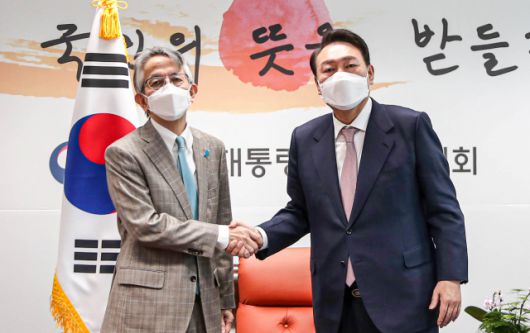 윤석열 대통령 당선인이 오는 5월 10일 취임을 전후해 일본에 정책협의단을 파견할 것으로 보인다. 29일 일본 아사히신문 보도에 따르면 윤 당선인은 전날 아이보시 고이치 주한 일본대사를 접견한 자리에서 이 같은 뜻을 전달했다. 새 정부의 대일 관계 기본 방침을 전달하기 위해서다. 정책협의단은 국회의원과 외교 및 일본 전문가 등으로 구성될 예정이다.