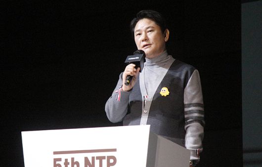 ▲;지난 1월에 열린 제5회 NTP 현장에서 발언 중인 넷마블 권영식 대표 (사진: 게임메카 촬영) |