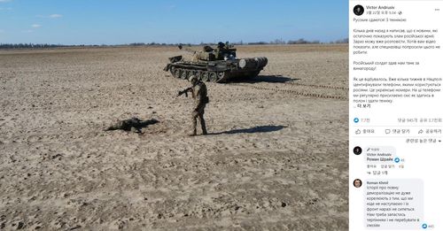 그러면서 안두르시프는 한 러시아 병사가 탱크 옆에 엎드려 누워 있고 우크라이나 병사가 총을 겨누고 감시하는 모습이 담긴 사진을 첨부했다.