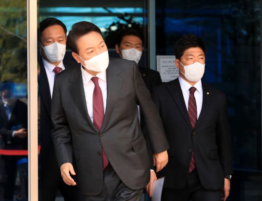 (서울=뉴스1) 인수위사진기자단 = 윤석열 대통령 당선인이 29일 오전 종로구 통의동 금감원 연수원에 마련된 제20대 대통령직인수위원회 집무실에서 외부 일정 참석차 나서고 있다. 2022.3.29/뉴스1 |