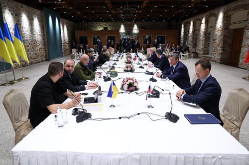 (이스탄불=연합뉴스) 김승욱 특파원 = 러시아와 우크라이나가 터키 이스탄불에서 5차 평화협상을 시작했다.