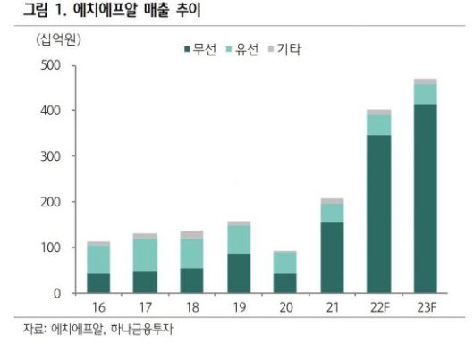 버라이즌 수주 미확보 시에도 2022년 에치에프알의 영업이익은 415억원을 기록할 전망이다. 그러나 경쟁사의 CAPA 고려시 버라이즌 수주를 확보하지 못할 가능성은 낮으며 총 수주 물량의 50% 이하를 확보한다고 가정해도 수출액은 전년대비 172% 성장한 2962억원을 기록할 것으로 추정된다. 김 연구원은 "통신장비 업체들의 실적부진이 지속되며 장비주에 대한 투자심리가 위축되었지만 실적을 통해 북미향 투자 사이클이 돌아왔음을 증명중인 에치에프알에 대해 관심환기가 필요한 시점이라 판단된다"고 강조했다.