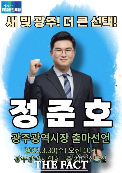 [더팩트 l 광주=문승용 기자] 제20대, 21대 국회의원 선거에서 더불어민주당 광주 북구갑 국회의원 후보로 출마했던 정준호 변호사가 30일 광주광역시장선거 출마를 공식 선언했다.