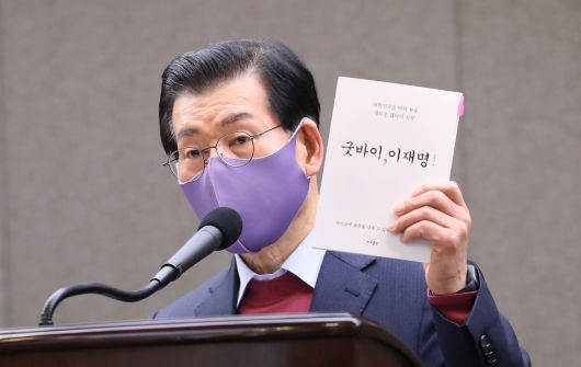 '굿바이 이재명' 저자 장영하 변호사가 2022년 2월 3일 오후 서울 중구 프레스센터에서 기자회견을 열고 대장동·성남FC 수사를 방해한 김오수 검찰총장과 박은정 성남지청장을 고발하겠다고 말하고 있다. /오종찬 기자 |