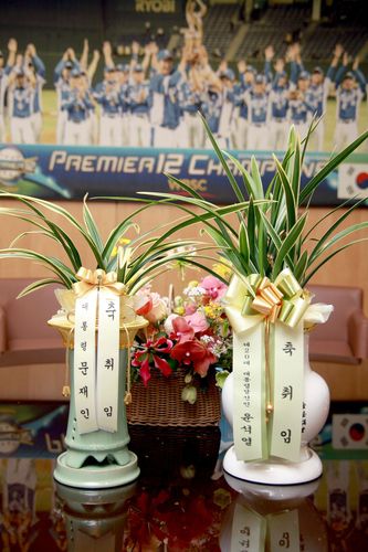 (서울=연합뉴스) 장현구 기자 = 문재인 대통령과 윤석열 대통령 당선인이 29일 취임한 허구연 한국야구위원회(KBO) 신임 총재에게 축하 난을 보냈다.