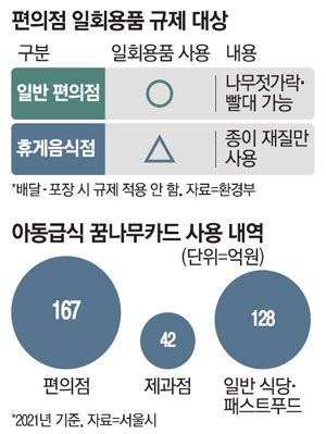 사실상 일반 식당과 편의점을 똑같이 취급해 일회용품을 쓰지 못하게 하는 것이다. 만약 배달이나 포장으로 판매할 경우 일회용품을 사용할 수 있도록 열어줬다고 하지만 편의점 점주 입장에서 혼란을 느낄 수밖에 없다.