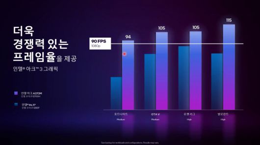 - 인텔의 XeSS AI 기반 이미지 업스케일링 기술은 게임 성능을 크게 향상시키는 데 활용된다. 예를 들어, 네이티브 1080p에 필적하는 성능으로 4K 해상도에서 게임을 실행할 수 있다.