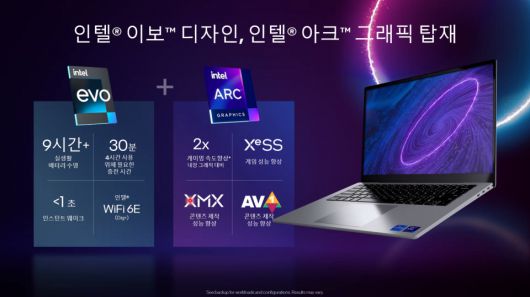 인텔 최초로 인텔 아크가 탑재된 노트북들은 인텔 이보 인증을 획득한 12세대 인텔 코어 프로세서 탑재 노트북이 될 예정이다. 이제 사용자는 씬앤라이트 노트북에서도 Wi-Fi 6, 놀랄만한 응답성과 배터리 수명을 즐길 수 있다. 향상된 인텔 아크 그래픽 처리 능력을 기반으로 노트북에서도 게이밍 및 콘텐츠 제작 기능이 새롭게 향상됐다. 인텔 아크를 탑재한 노트북을 출시하는 제조사는 출시 동영상에서 확인할 수 있다.
