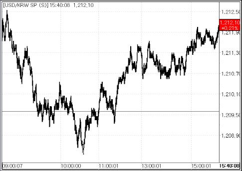 외환시장 관계자는 “오전 중 수출업체의 네고 물량에 1200원대로 하락하며 밀리는 듯 했지만, 오루들어 우크라이나 불확실성과 결제 수요 등이 동시에 작용하면서 환율이 다시 1210원대로 상승 하는 그림을 나타냈다”면서 “다만 달러화 강세폭이 그리 크지 않기 때문에 환율 저가와 고가 사이의 등락폭이 크지 않았다”고 말했다.