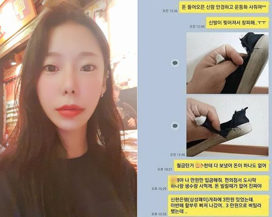 윤씨가 생전 이씨에게 보냈던 카카오톡 메시지 일부. 통장 잔고 0원이 캡처된 사진도 보냈다. /인스타그램 |