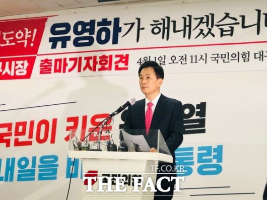 [더팩트ㅣ대구=박성원 기자] 박근혜 전 대통령의 법률대리인인 유영하 변호사가 1일 오전 국민의힘 대구시당에서 대구시장 출마를 선언했다.