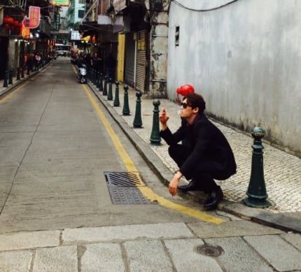 공개된 사진에는 오상진이 과거 홍콩의 길거리에서 담배를 피우고 있는 모습이 담겼다. 올블랙 패션에 선글라스까지 착용한 그는 쭈그려 앉아 흡연을 하고 있다. 그의 입에선 연기가 피어나고 있다.