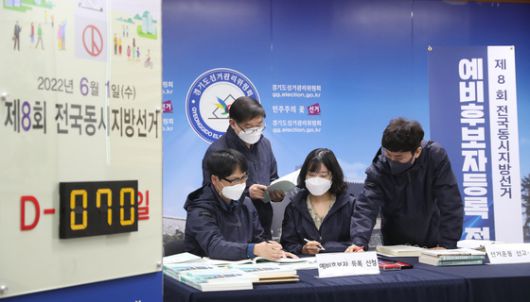 제8회 전국동시지방선거를 70일 앞둔 지난달 23일 오전 경기 수원 영통구 경기도선거관리위원회에서 선관위 관계자들이 분주하게 지방선거 관련 사무 업무를 보고 있다. 2022.3.23/뉴스1 |