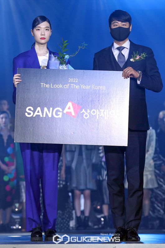 (서울=국제뉴스) 이대웅 기자 = 국내 유망 모델을 발굴해 유럽 진출을 돕는 '2022 더룩오브더이어 코리아(THE LOOK OF THE YEAR KOREA)' 모델 콘테스트 본선 대회가 지난 29일 서울 광진구 그랜드 워커힐 호텔 서울 비스타홀에서 열렸다. 이날 상아제약상을 수상한 박태주가 상아제약 김봉수 대표와 함께 기념 포즈를 취하고 있다.