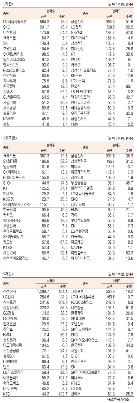 [표]유가증권 기관·외국인·개인 순매수·순매도 상위종목(4월 4일)