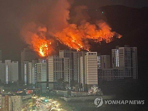 당국은 산불과 인접한 아파트 단지 주변으로 소방차량 30여 대를 배치해 불길이 민가로 번지지 않도록 방어선을 구축했다. 현재는 잔불 감시작업을 이어가고 있다.