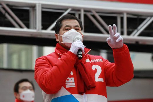 박대출 국민의힘 선거대책본부 유세본부장이 최근 한 유세장에서 윤석열 후보의 지지를 호소하고 있다. (사진=국민의힘 선대본부) |