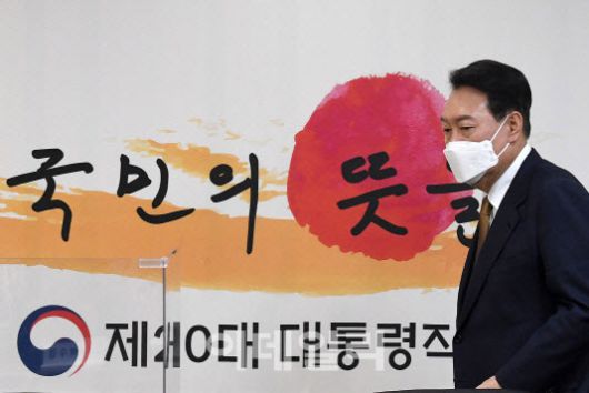 윤석열 대통령 당선인이 지난 1일 오전 서울 종로구 한국금융연수원에 마련된 대통령직인수위원회 대회의실에서 열린 국민통합위원회 1차 전체회의에 참석하고 있다. (사진=연합뉴스) |