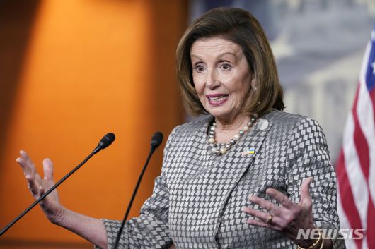 [워싱턴=AP/뉴시스]지난달 3일 워싱턴 국회의사당에서 낸시 펠로시 하원의장이 기자회견을 하고 있다. 2022.04.06. |
