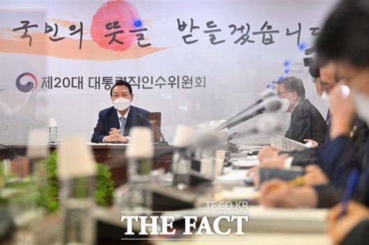 윤석열 대통령 당선인이 6일 오후 서울 종로구 통의동 대통령직인수위원회에서 열린 시·도지사 간담회를 주재하고 있다. /인수위 제공 |