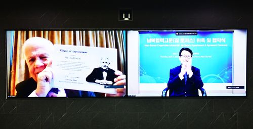 협약식은 애초 지난 6일 파주시에서 열릴 예정이었으나 이 행사를 위해 한국을 찾은 로저스 회장이 공항 입국 과정 중 신종 코로나바이러스 감염증(코로나19) 양성 판정으로 격리되면서 하루 늦은 이날 비대면 영상 회의로 진행됐다.