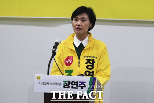 [더팩트 l 광주=나윤상 기자] 정의당 장연주 광주시장 예비후보가 7일 ‘친환경 무상교통’ 공약 기자회견을 가졌다.