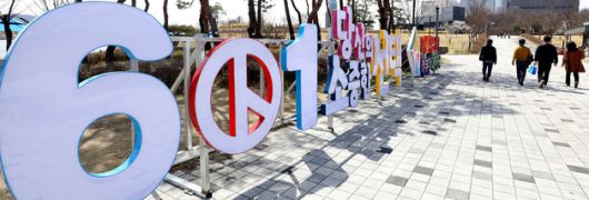 (세종=뉴스1) 김기남 기자 = 제8회 전국동시지방선거를 60여 일 앞둔 1일 세종시 호수공원에 설치된 투표 홍보물을 바라보며 시민들이 걸어가고 있다. 선거일 전 60일인 2일부터 지방자치단체장·교육감의 각종 행사 개최·후원이 금지되고, 정당·후보자 명의의 선거여론조사를 실시할 수 없다.2022..4.1/뉴스1 |