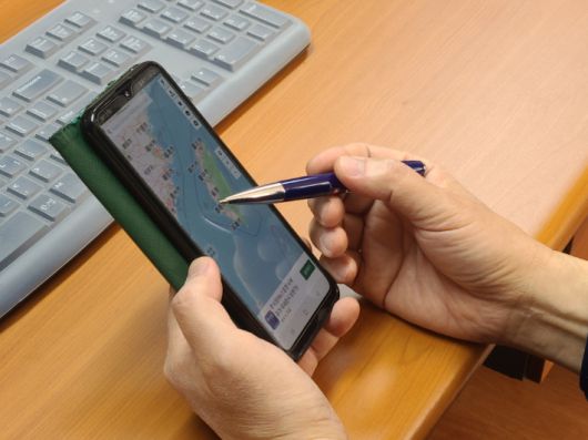 8일 오후 대만 해역서 한국인 6명이 실종된 것과 관련 실종자 가족 대기를 위해 마련된 부산 중구 사무실에서 선박 회사 관계자가 실종 지점을 가리키고 있다. 연합뉴스