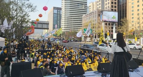 4·16연대와 4·16 세월호참사 가족협의회(가족협의회) 유족 등 300여명은 이날 오후 2시께부터 서울 종로구 신교동 푸르메센터와 동대문성곽공원 광장에서 중구 서울시의회까지 노란기억·노란물결 행진을 진행했다.