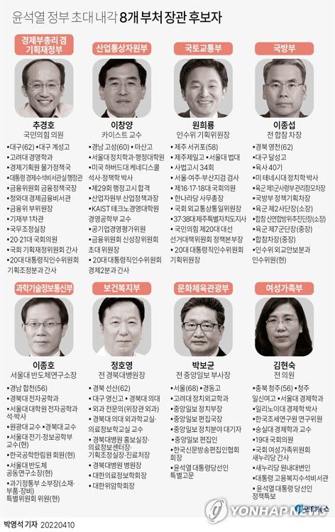 [그래픽] 윤석열 정부 초대 내각 8개 부처 장관 후보자 |