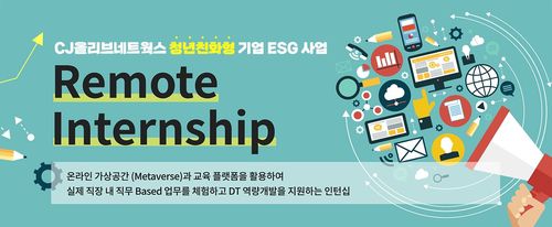 (서울=연합뉴스) 최현석 기자 = CJ올리브네트웍스는 메타버스 플랫폼을 이용해 원격 인턴십 프로그램인 '리모트 인턴십'을 운영한다고 11일 밝혔다.