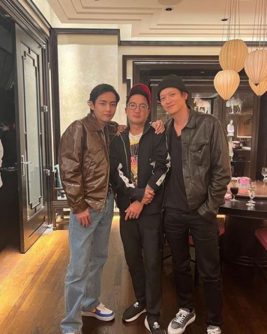 공개된 사진에는 브라이언 리와 뷔, 배우 강동원의 모습이 담겨있다. 어깨에 손을 올리고 다정한 분위기를 자아냈다.