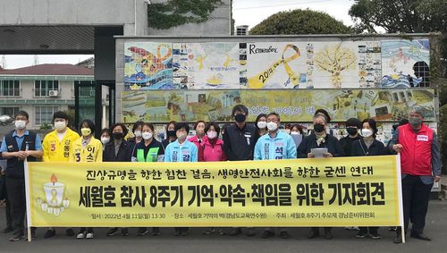 준비위원회는 이날 경남교육연수원에 마련된 '기억의 벽' 앞에서 기자회견을 열고 "참사 8년이 지났지만 우리는 여전히 진실을 밝히기 위해 진상규명 성역과 싸우고 있다"며 "진상규명과 안전 사회를 향한 책임을 다하겠다"고 다짐했다.