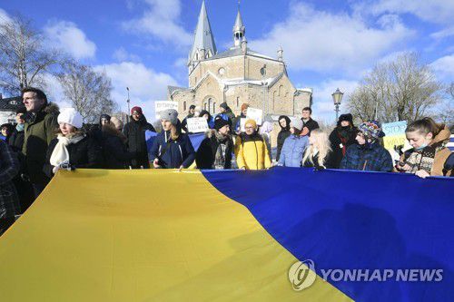2월 26일 에스토니아 나르바에 있는 러시아총영사관 앞에서 열린 우크라이나 지지 시위 |