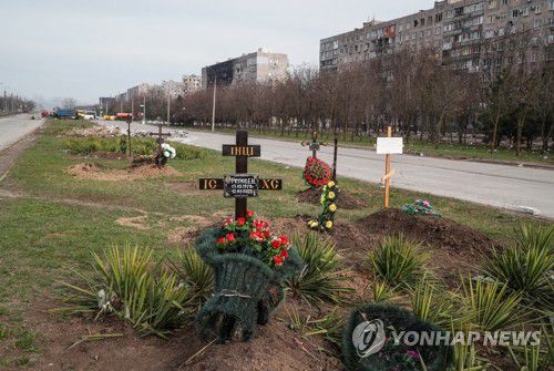 아파트 앞 공터가 묘지로 변한 우크라 마리우폴 |