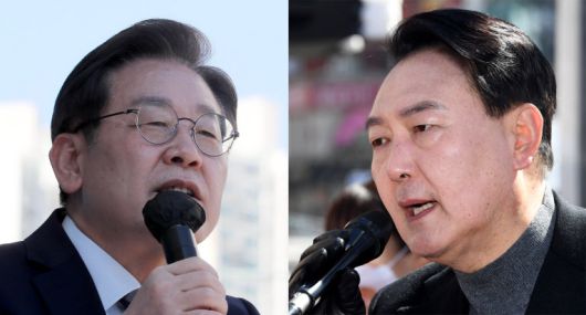 이재명 더불어민주당 대선 후보(왼쪽), 윤석열 국민의힘 대선 후보(오른쪽) . 국회사진기자단·연합뉴스 |