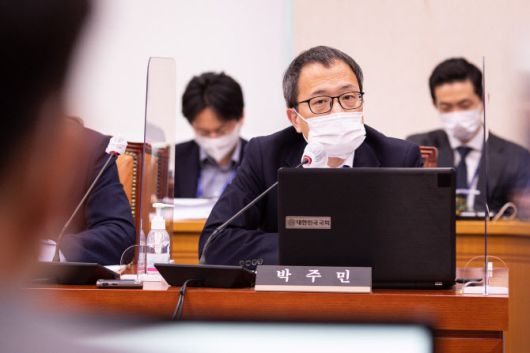 박주민 더불어민주당 의원이 지난 4일 서울 여의도 국회에서 열린 제394회 국회(임시회) 법제사법위원회 전체회의에서 의사진행 발언을 하고 있다.(사진=뉴시스) |