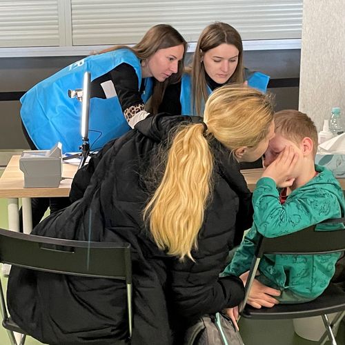 폴란드로 피난한 우크라이나 난민을 위해 상담을 진행하는 유엔난민기구 관계자들. [유엔난민기구 제공] |